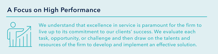Our Accounting and Finance department manages all aspects of the firm’s financial operations and strategy to ensure sustainable growth and value. Members of the team work in the areas of billing and collections, financial planning and analysis, general ledger and financial reporting, employee payroll and compensation, insurance, credit facility, and treasury management.